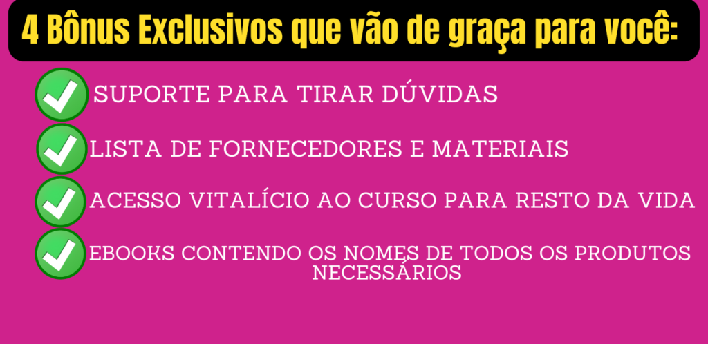 Fique tranquila! Se não gostar do conteúdo nós devolveremos cada centavo! Se por algum motivo você não gostar do treinamento poderá solicitar reembolso total do valor do curso a qualquer momento (dentro do prazo de 7 dias após a compra).