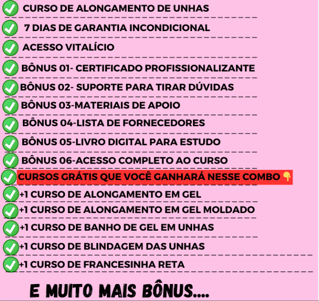 Temos uma oferta Especial deupgrade para plano curso alongamento de unhas SIM! QUERO GARANTIR TODAS AS ATUALIZAÇÕES!